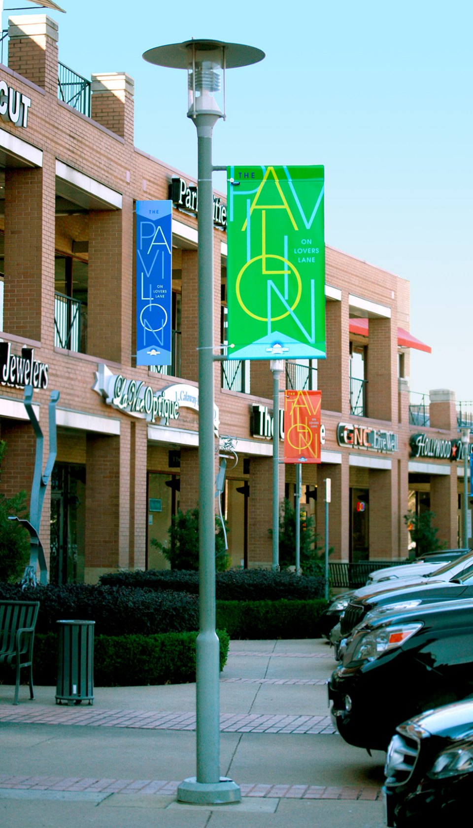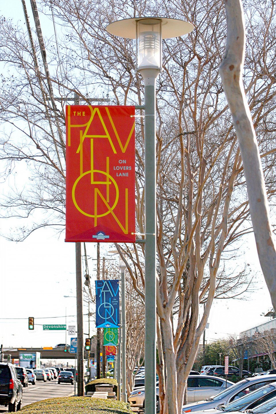 Large pole banners for upscale shopping center in Dallas, Texas.